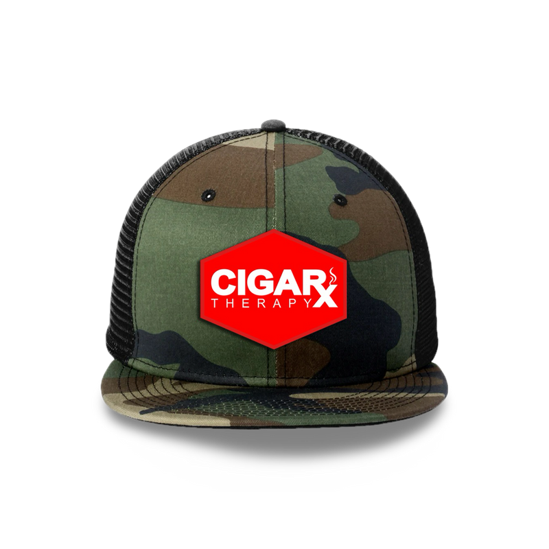 Camo never goes out of style, but when paired with a clean red CIGARx Therapy patch, it takes on a whole new level of cool. The flat bill and structured crown keep the look crisp and modern, while the mesh back ensures breathability—perfect for long smoke sessions, whether indoors or out on the patio.