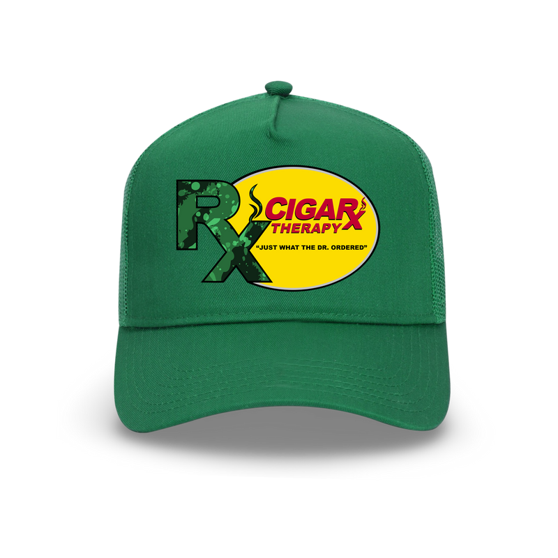 The Green Curved Trucker with Green RX Patch brings contrast and swagger in all the right ways. The bold green crown is leveled up with the RX-on-yellow oval patch, giving it the kind of punch that’s impossible to ignore.