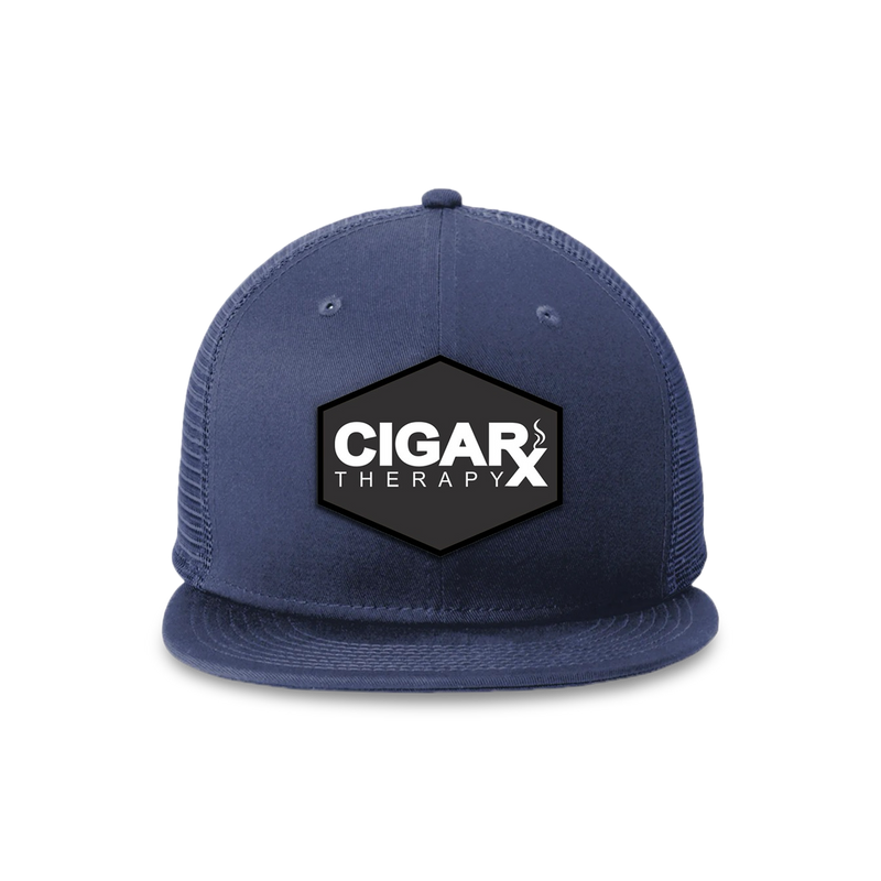 Navy Blue Flat Trucker with Black Classic Patch