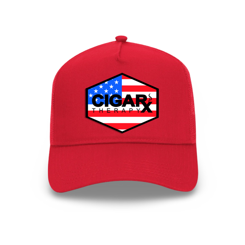 Red Curved Trucker with USA Flag Patch